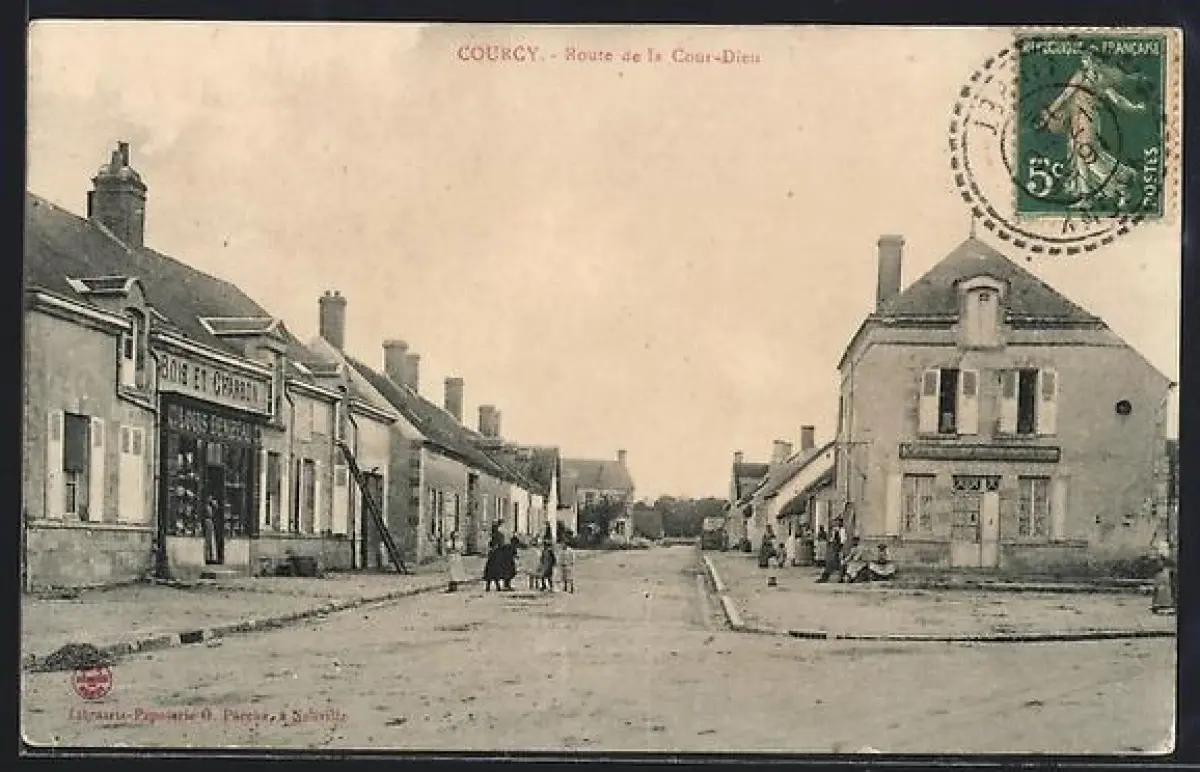 AK Courcy, Route de la Cour-Dieu avec boutiques et passants