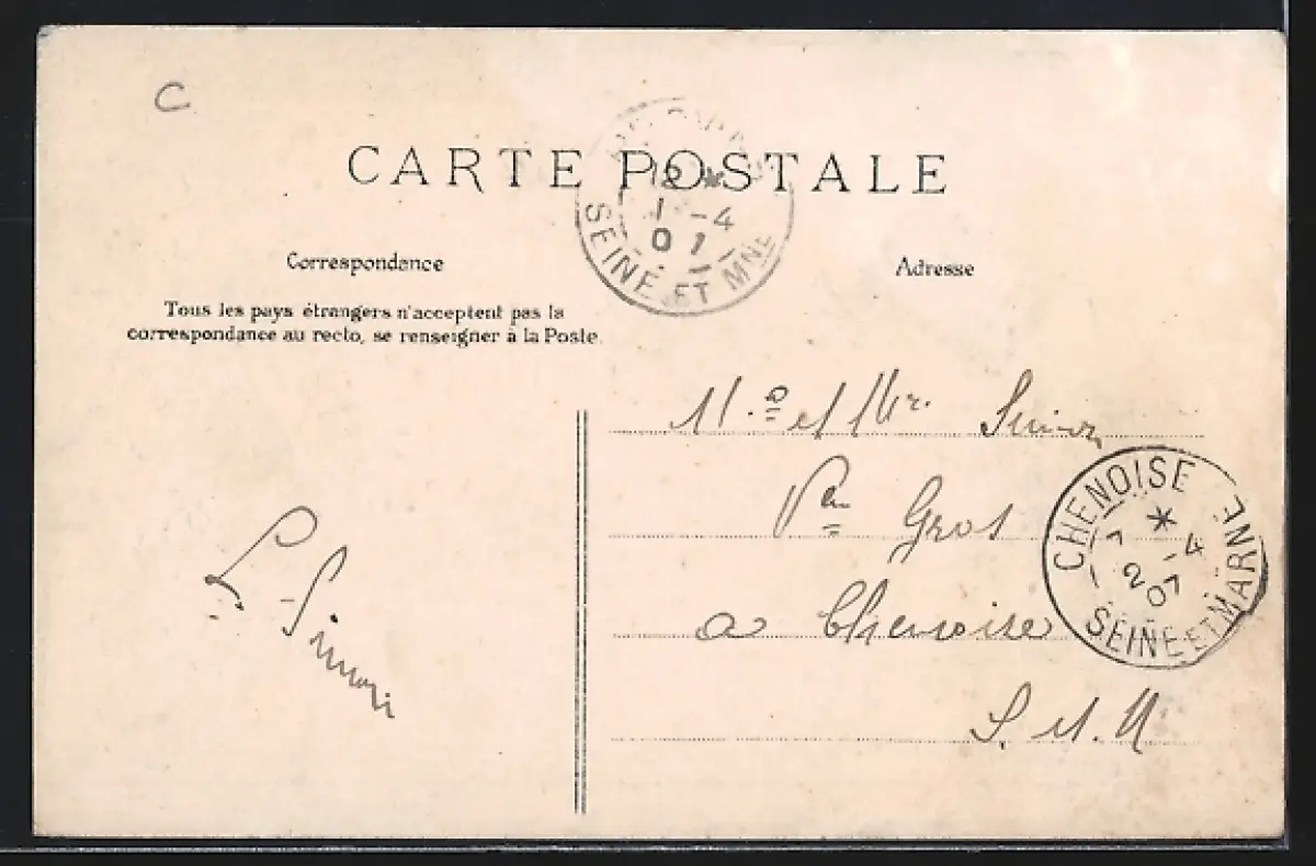 gelaufen 1907, Eckknick oben links, guter Zustand