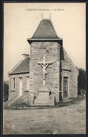 AK Cournon, La Mairie et le Crucifix devant l`entrée