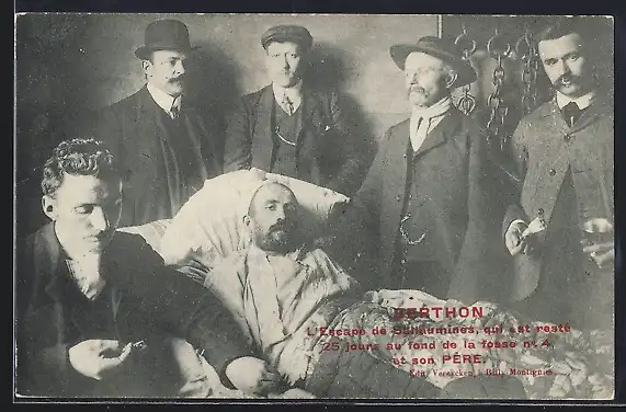 AK Courrièrres, Berthon, l`escape de Sallaumines..., Überlebender von Grubenunglück, Bergbau