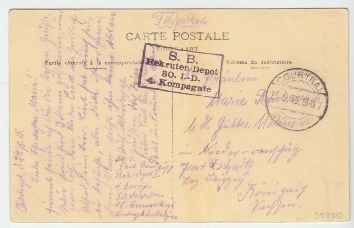 Einheitenstempel: S. B. Rekruten-Depot, 30. I.-D., 4. Kompagnie