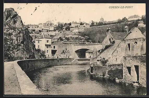 AK Cousin-le-Pont, Vue du pont et des maisons au bord de la rivière