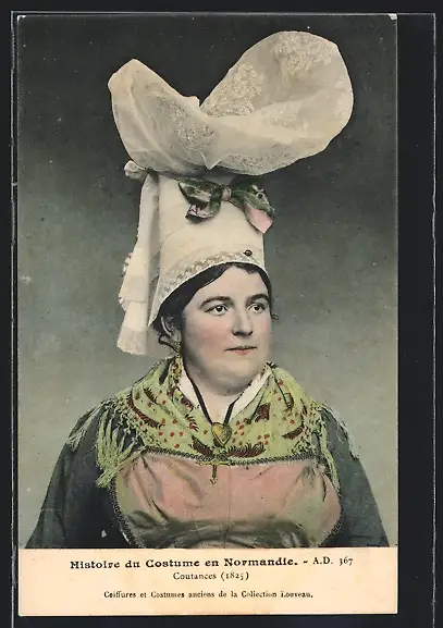 AK Coutances /Normandie, Frau in Tracht mit Haube