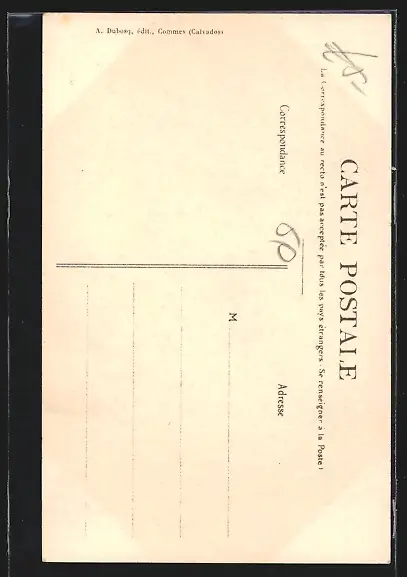 Personenbezogene Daten auf der Rückseite der Karte wurden durch blauen Textmarker unkenntlich gemacht. Die blauen Stellen sind auf die Vorderseite durchgeweicht und wirken sich negativ auf das Postkartenfoto aus