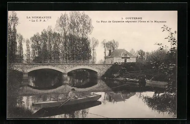 AK Couterne, Le Pont de Couterne séparant l`Orne et la Mayenne