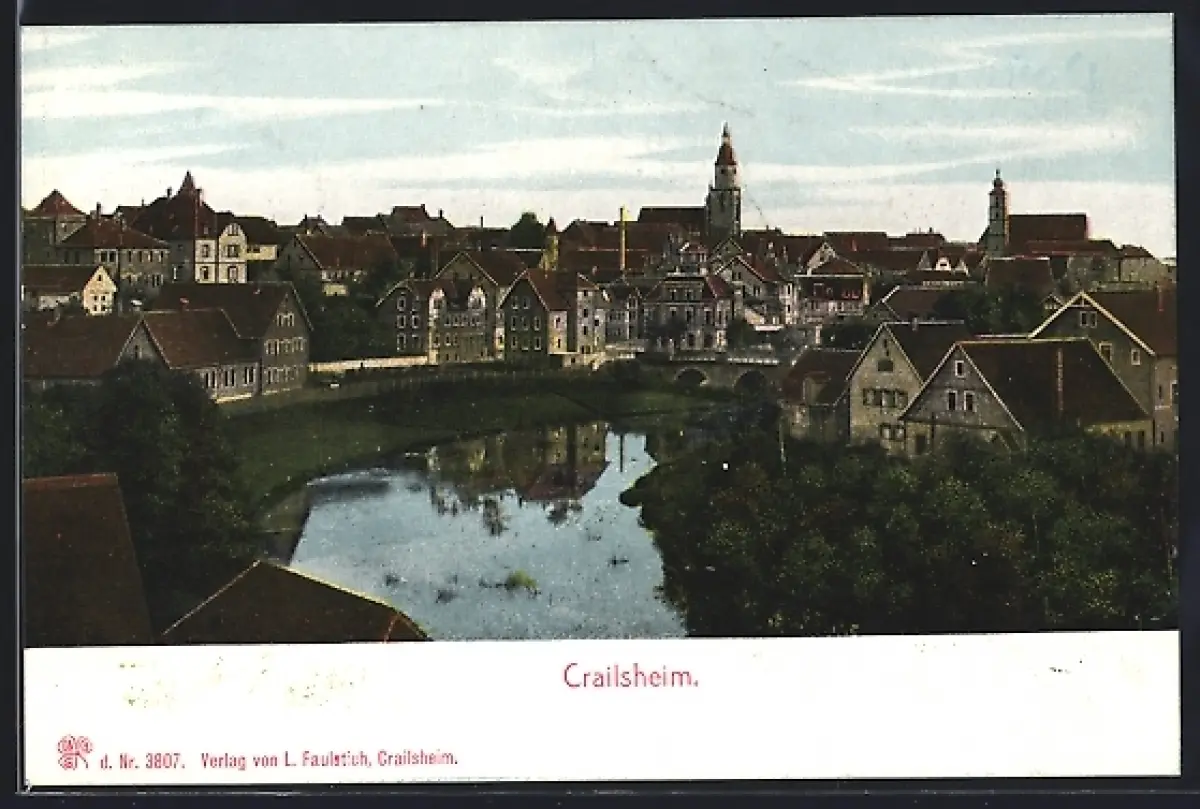 AK Crailsheim, Stadtansicht mit Fluss und Kirche