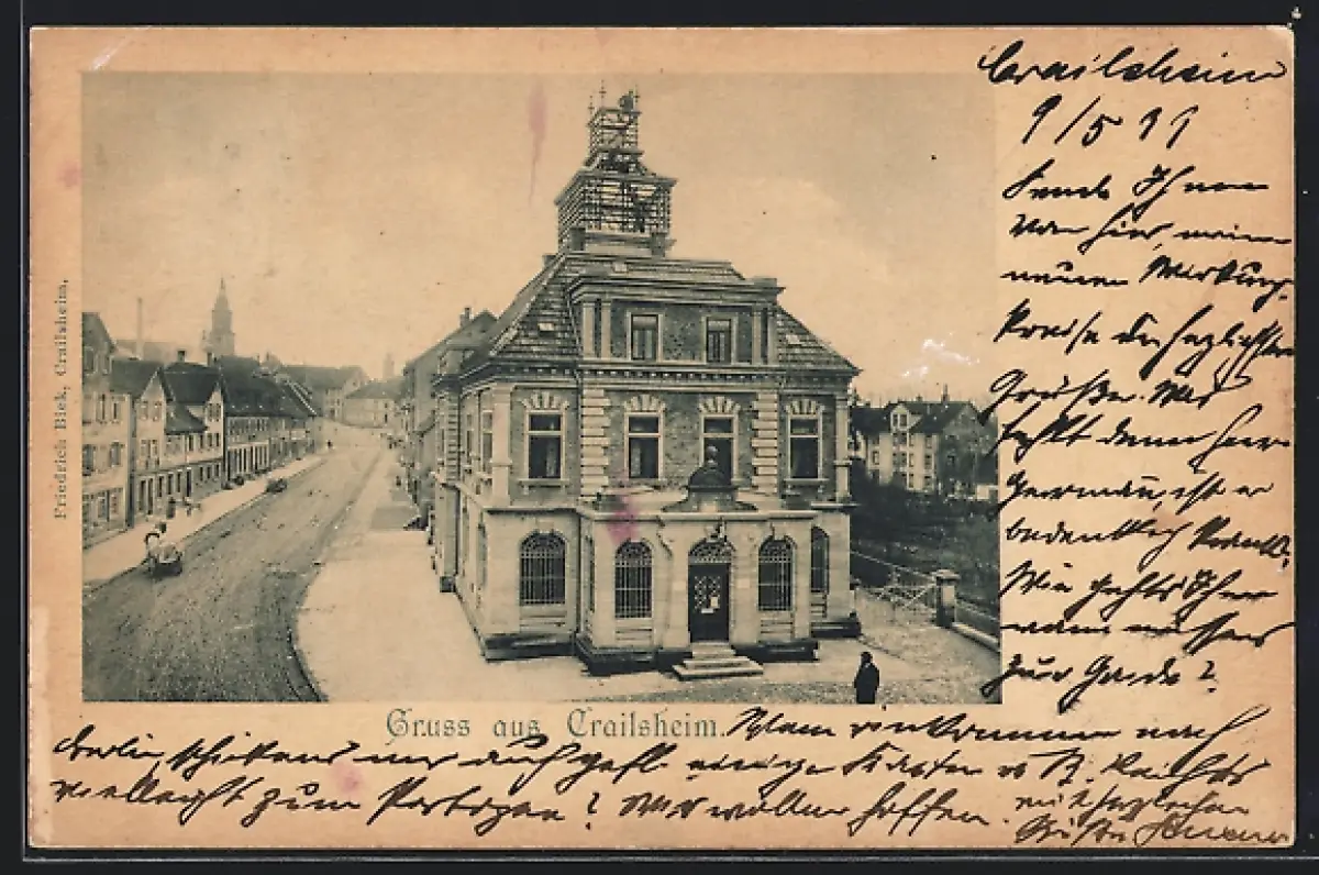 AK Crailsheim, Wilhelmstrasse mit Postamt