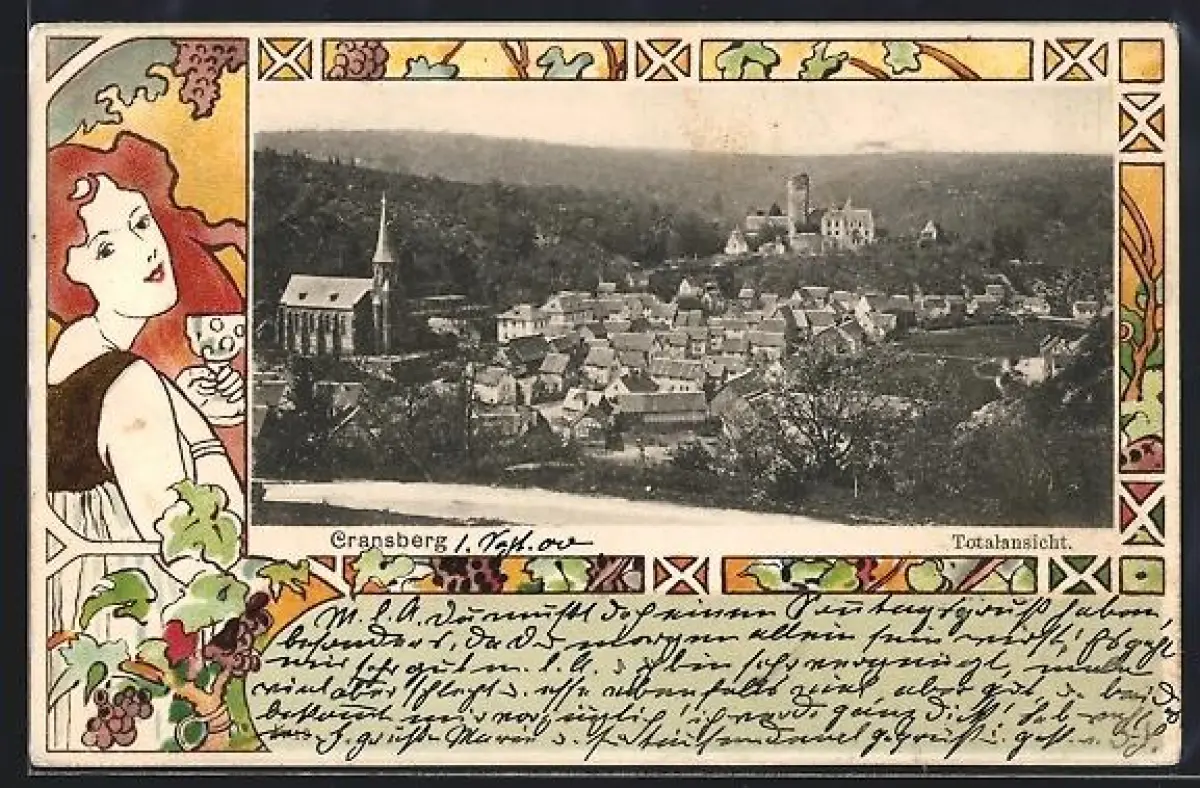 AK Cransberg, Totalansicht des Ortes in dekorativem Rahmen