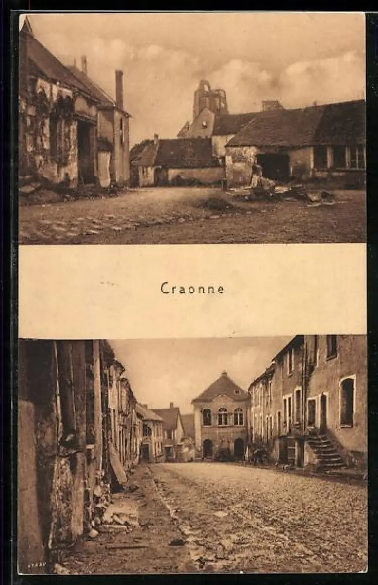 AK Craonne, Vues des rues et bâtiments en ruines après la guerre