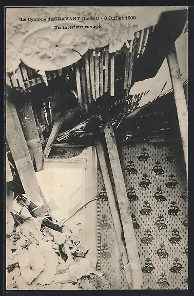 AK Cravant, Le Cyclone, 3 Juillet 1905, Un intérieur ravagé, Unwetter