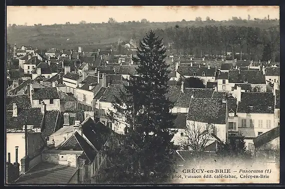 AK Crécy-en-Brie, Panorama du village avec vue sur les toits et la campagne environnante