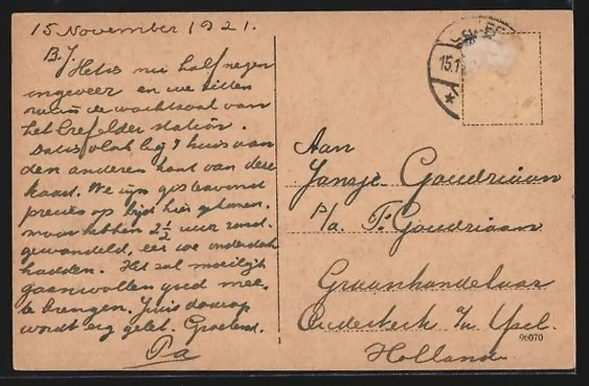 alte Ansichtskarte, gelaufen, Briefmarke entfernt, guter Zustand