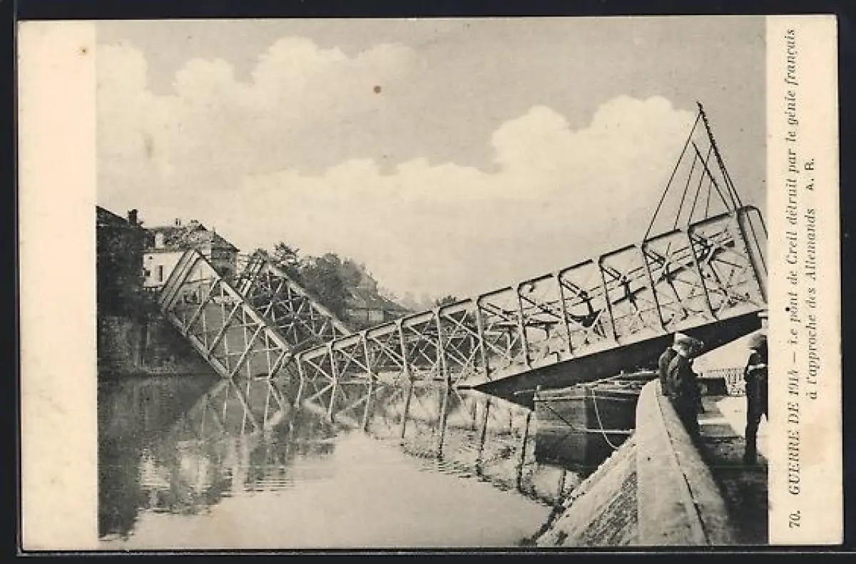 AK Creil, Pont détruit par les génies francais lors de la Guerre de 1914-18