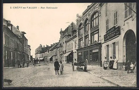 AK Crépy-en-Valois, Rue Nationale, Strassenpartie