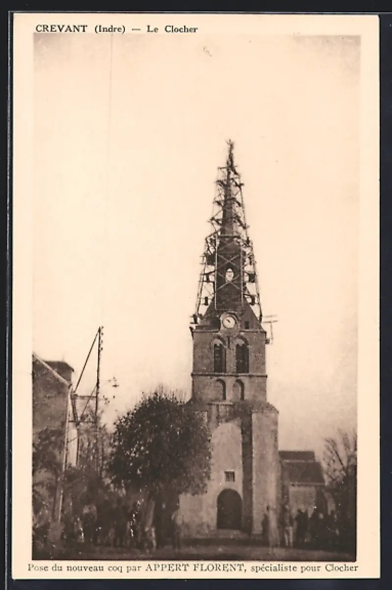 AK Crevant /Indre, Le Clocher avec installation d`un nouveau coq par Appert Florent