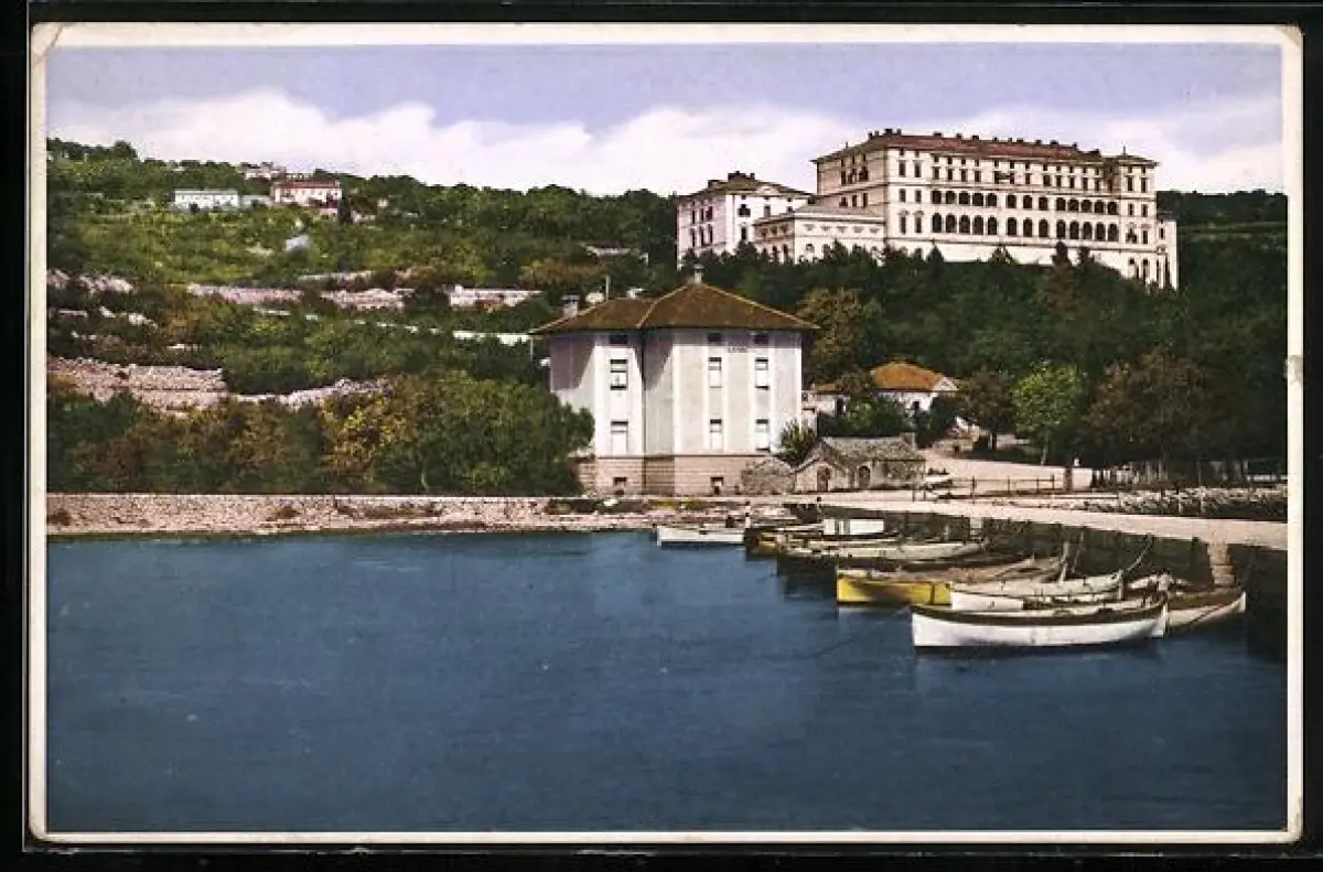 AK Crikvenica, Ortspartie vom Wasser aus gesehen