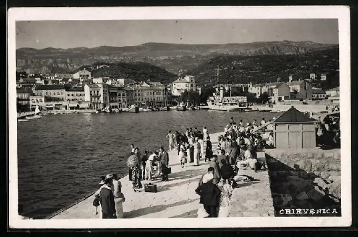 AK Crikvenica, Passagiere warten auf ihr Schiff im Hafen