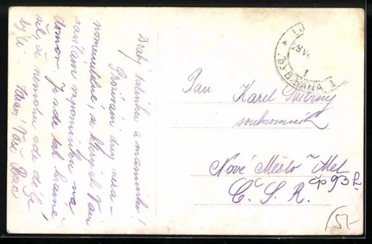 alte Ansichtskarte, gelaufen, Briefmarke entfernt, guter Zustand