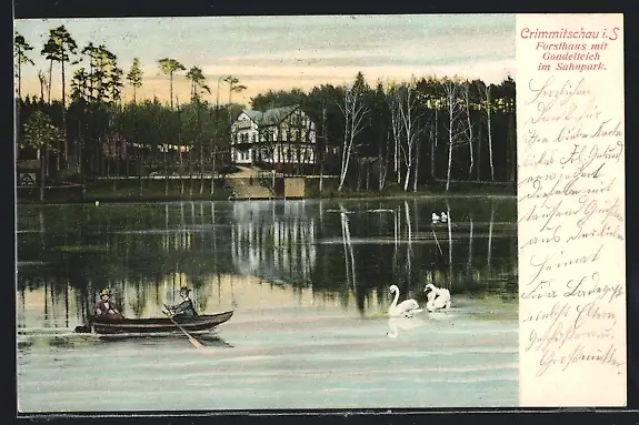 AK Crimmitschau, Forsthaus mit Gondelteich im Sahnpark