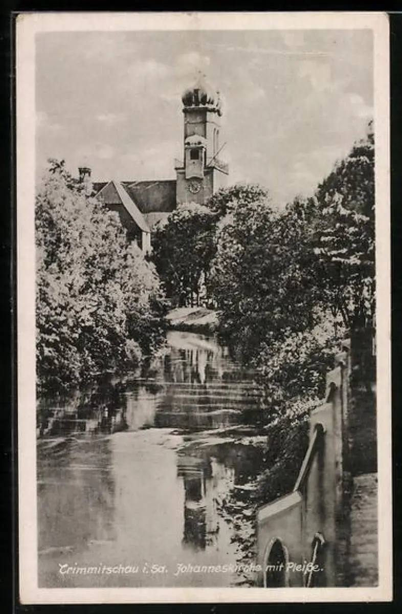 AK Crimmitschau i. Sa., Johanneskirche mit Pleisse