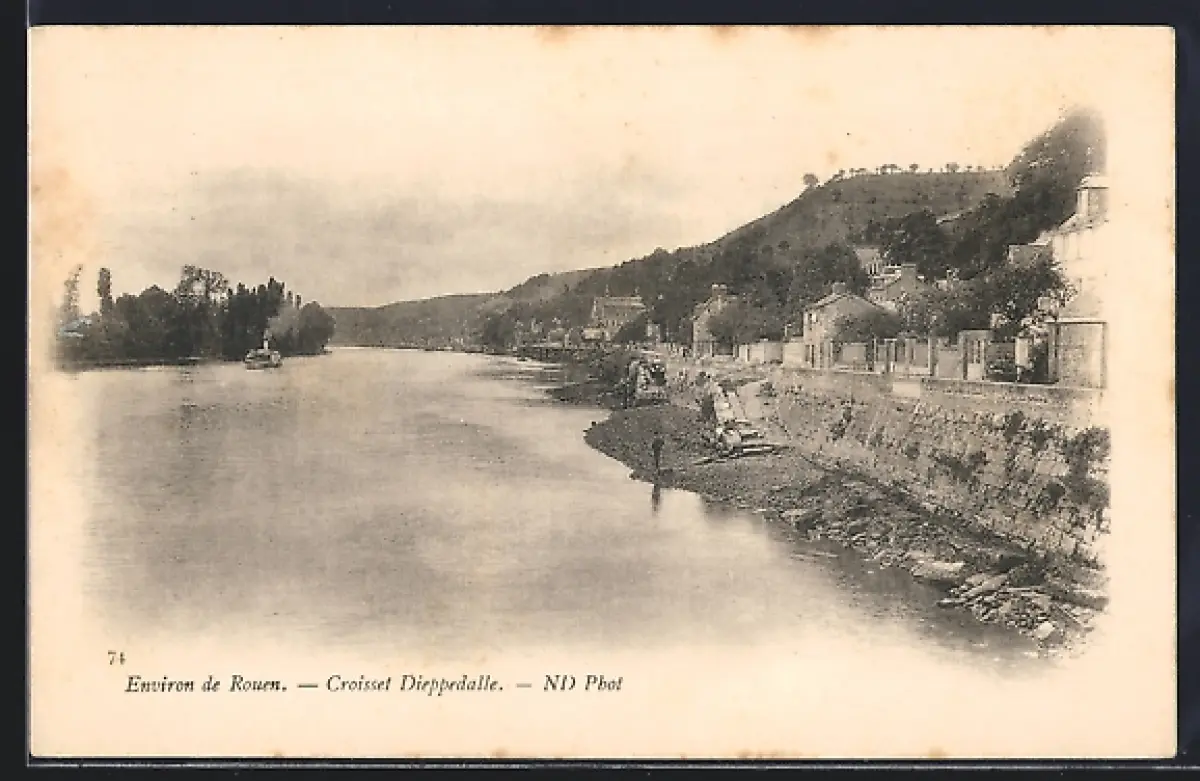 AK Croisset Dieppedalle, Vue sur le fleuve et les collines environnantes