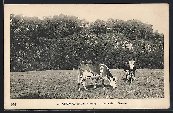 AK Cromac, Vallée de la Benaize avec des vaches paissant dans un champ