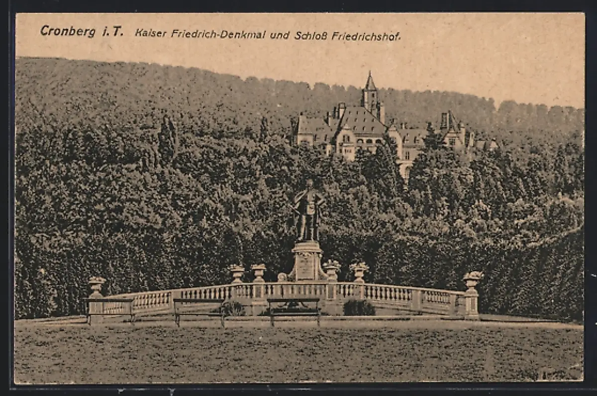AK Cronberg i. T., Kaiser Friedrich-Denkmal, Schloss Friedrichshof
