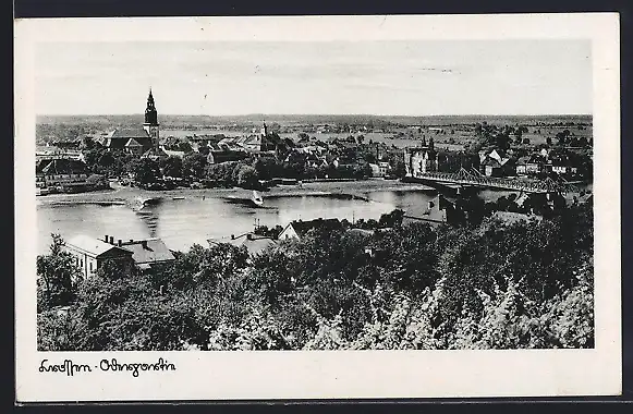 AK Crossen, Oderpartie aus der Vogelschau