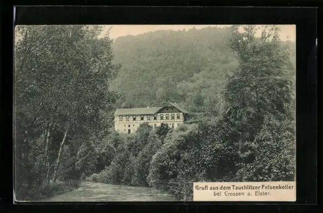 AK Crossen a. Elster, Gasthaus Tauchlitzer Felsenkeller