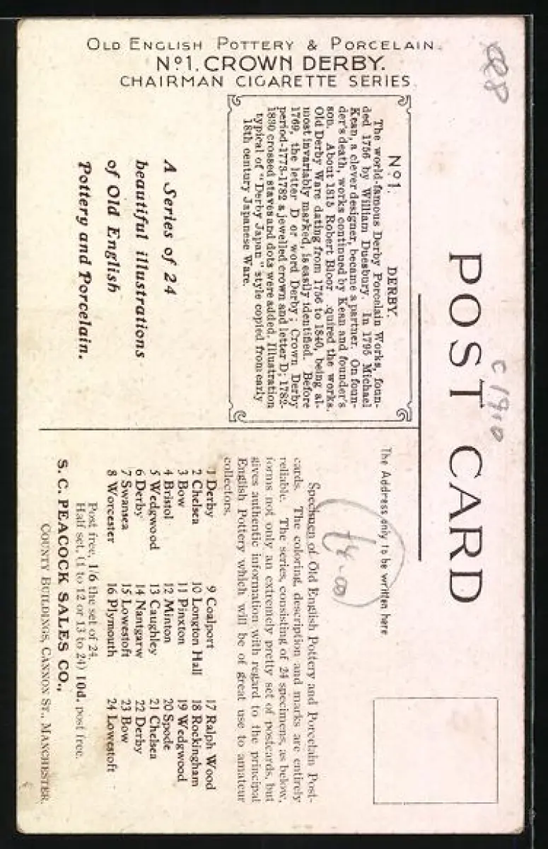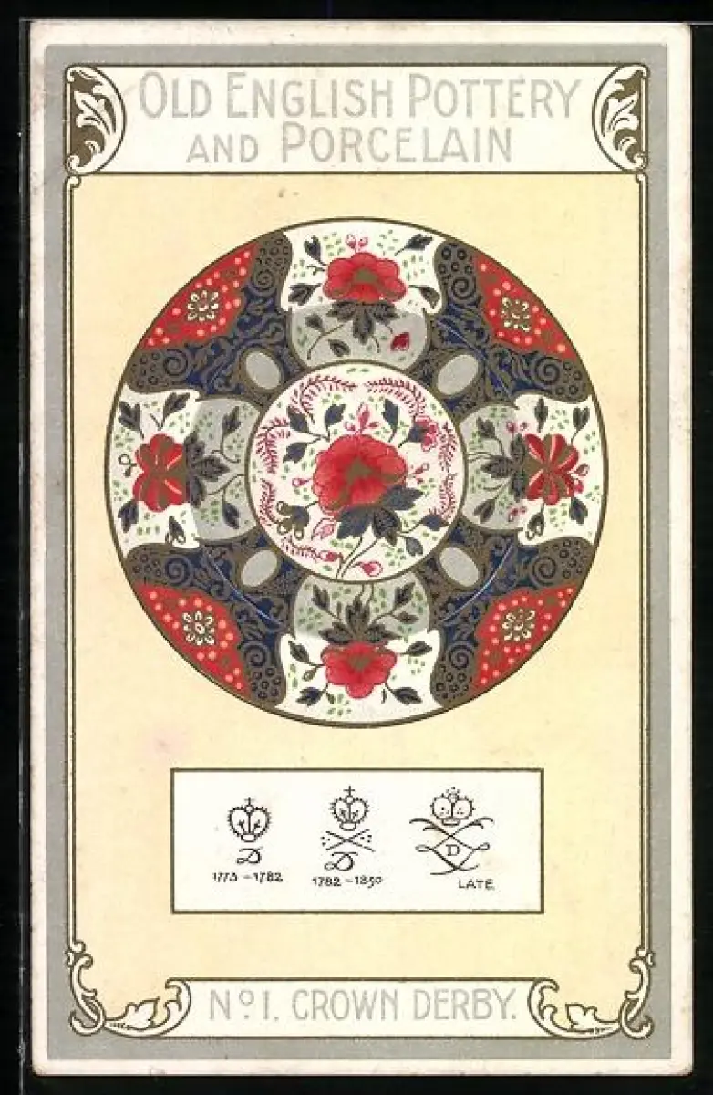AK Crown Derby, No 1, Old English Pottery and Porcelain, Teller, 1773-1782, 1782-1830, Late