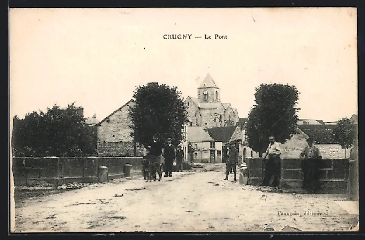 AK Crugny, Le Pont avec vue sur l`église et village en arrière-plan
