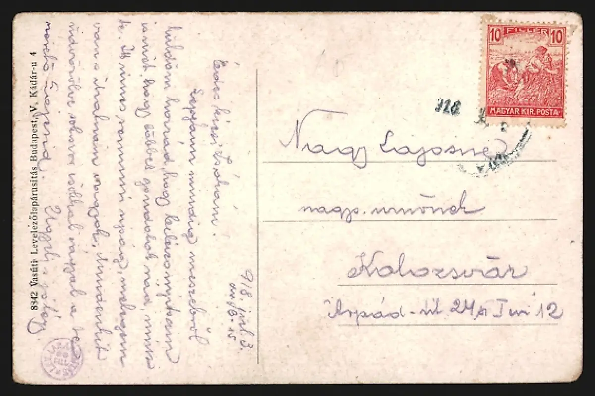 Personenbezogene Daten auf der Rückseite der Karte wurden durch blauen Textmarker unkenntlich gemacht. Die blauen Stellen sind auf die Vorderseite durchgeweicht und wirken sich negativ auf das Postkartenfoto aus