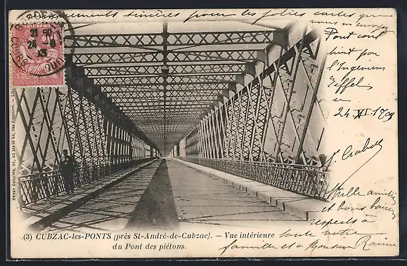 AK Cubzac-les-Ponts, Vue intérieure du Pont des piétons