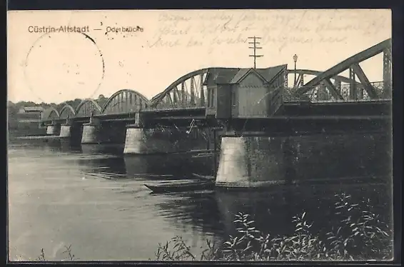 AK Cuestrin-Altstadt, Blick zur Oderbrücke