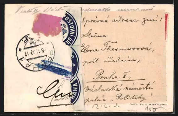 gelaufen 1933, rückseitig Klebe- und Papierreste, guter Zustand