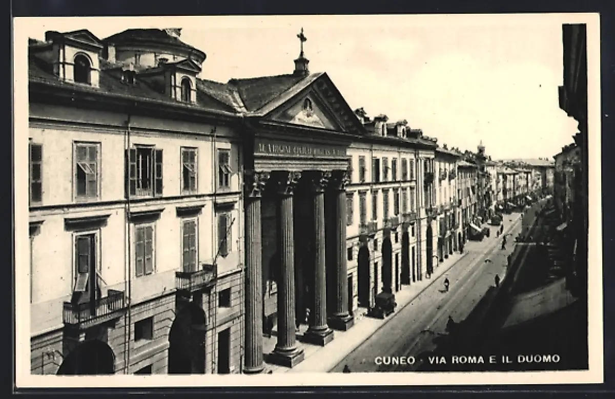 AK Cuneo, via Roma e il duomo
