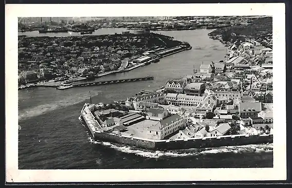 AK Curacao, Teilansicht mit Festungsmauer aus der Vogelschau