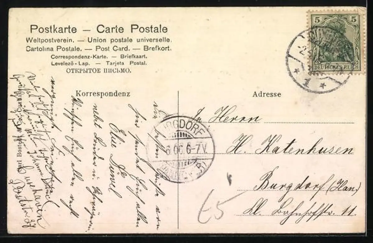 alte Ansichtskarte, gelaufen 1900, guter Zustand