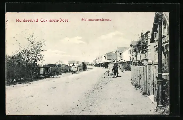 AK Cuxhaven-Döse, Radfahrer in der Steinmarnerstrasse