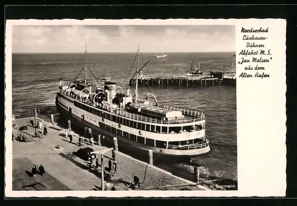 AK Cuxhaven-Dühnen, Abfahrt des Passagierschiff M.S. Jan Molsen aus dem Alten Hafen