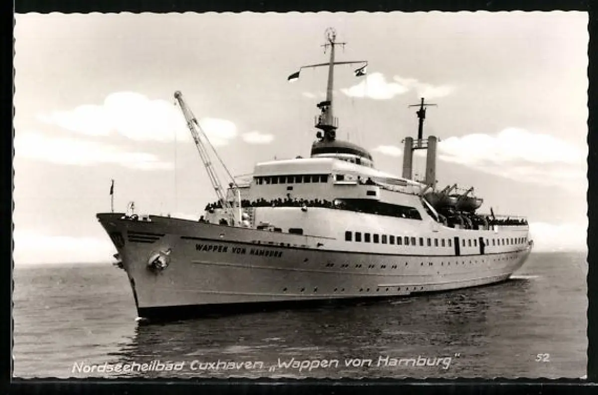 AK Cuxhaven, Passagierschiff Wappen von Hamburg in Bugansicht