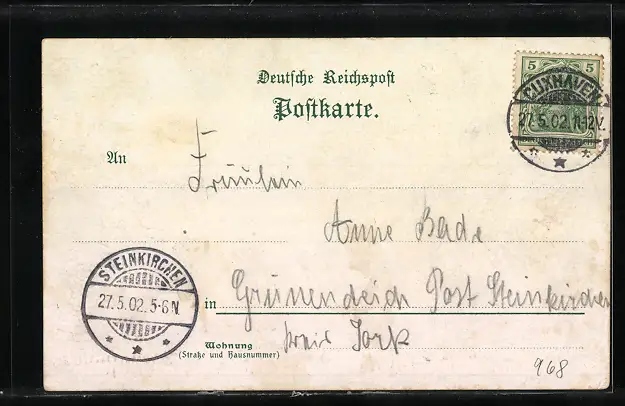 gelaufen 1902, Eckknick li. oben, guter Zustand
