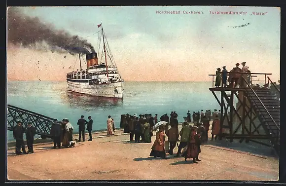 AK Cuxhaven, Turbinendampfer Kaiser läuft in den Hafen ein