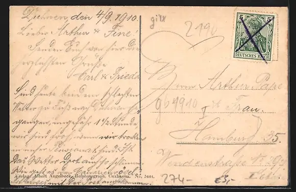 alte Ansichtskarte, gelaufen 1910, guter Zustand