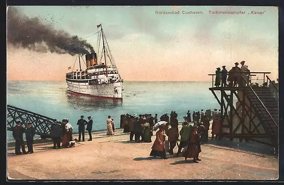 AK Cuxhaven, Turbinendampfer Kaiser läuft in den Hafen ein