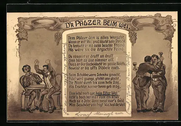 AK D`r Pälzer beim Wei..., Feiernde Männer trinken Wein
