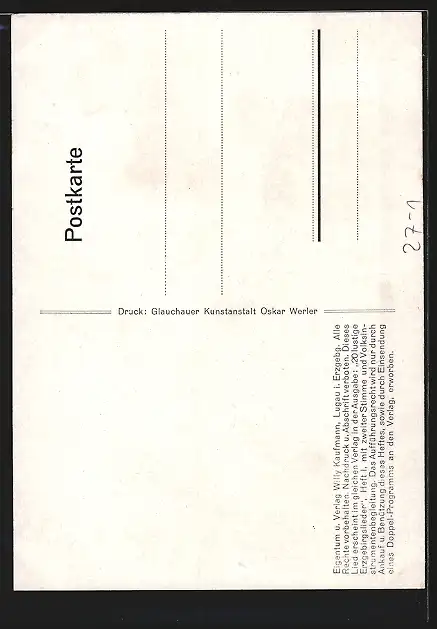 Ein Angebot in Ansichtskarten Musik: Liedkarten - 752 weitere Angebote in dieser Kategorie