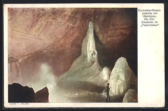 AK Dachstein-Rieseneishöhle bei Obertraun, Eissäulen im Parzivaldom, Eisberge im Höhleninneren