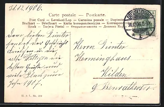 alte Ansichtskarte, gelaufen 1906, Stempelspur, guter Zustand