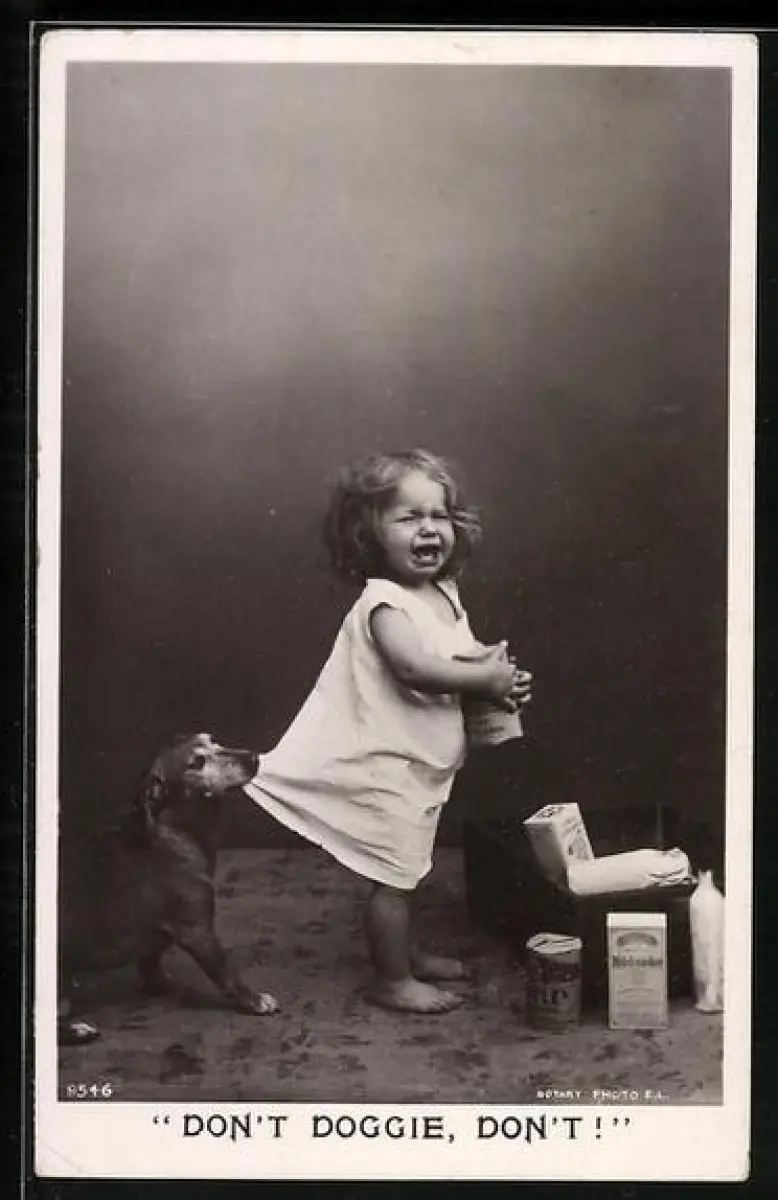 AK Dackel zerrt am Kleid eines weinenden Mädchens